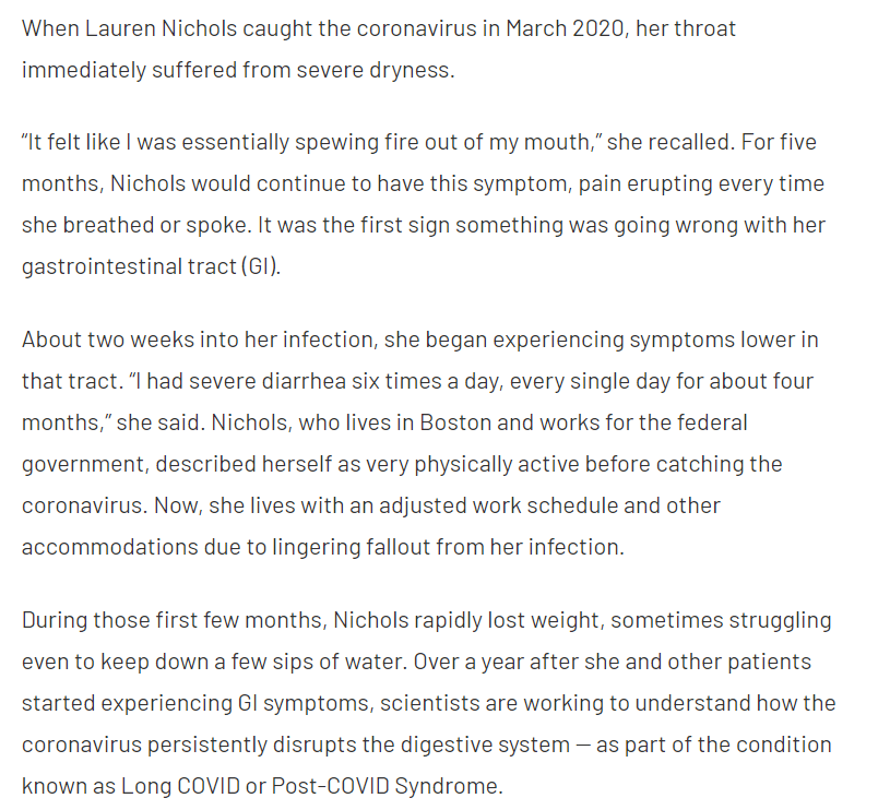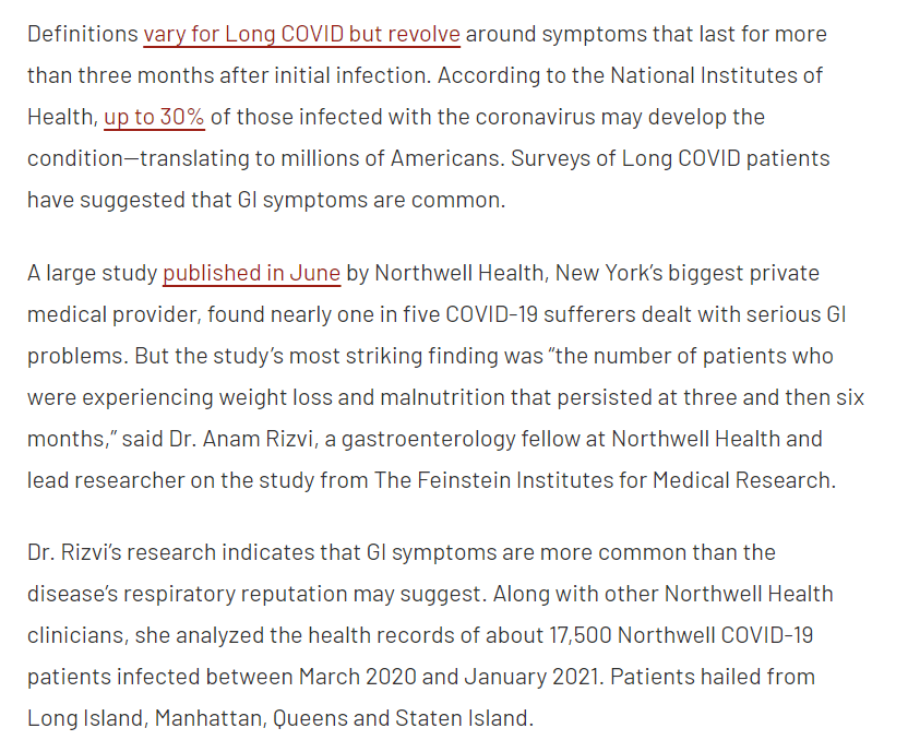 Posted on October 18, 2021November 7, 2021 by Betsy Ladyzhets Chronic Weight Loss And Malnutrition Join Devastating List Of Long COVID Symptoms Read the full story on Gothamist, published October 18, 2021. Related