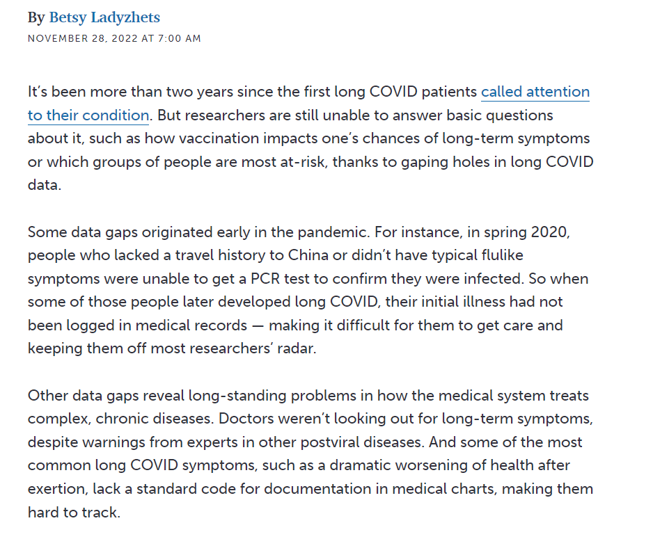 Posted on November 28, 2022December 30, 2022 by Betsy Ladyzhets How researchers are working to fill the gaps in long COVID data Read the full story at Science News, published November 28, 2022. Related