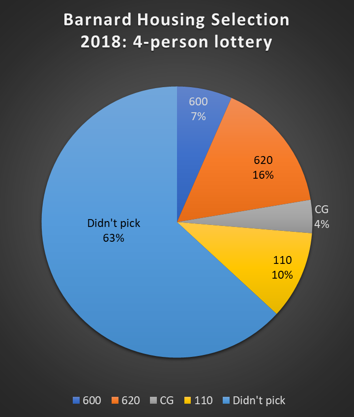 One significant advantage of an entirely-online system is that data on housing selection are easier to collect. Barnard Res Life has leaned into this advantage, as the office made spreadsheets with all remaining rooms and all lottery picks available to anyone with a barnard.edu email address. This is a huge step up from previous years, when Barnard students mostly had to guess which rooms and suites would go to whom based on past experience and hearsay; students can now access literally every single choice made by every single housing group of the 2018 housing selection process.
